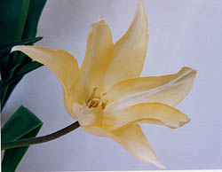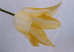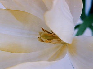 はじめは黄色の花びらが、開ききってくると白くなってきます。 白いチューリップではありますが、純白ではありません。