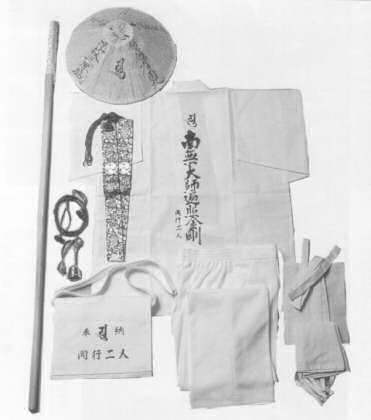 - 白衣(6,びゃくえ)、長袖、半袖、袖無しの三種類ありますが、好みにより季節により着る人も着ない人もいます。白衣を着ていれば目立つので交通安全になり、遍路道を間違えたりすると教えてくれます。( 2,500円前後)