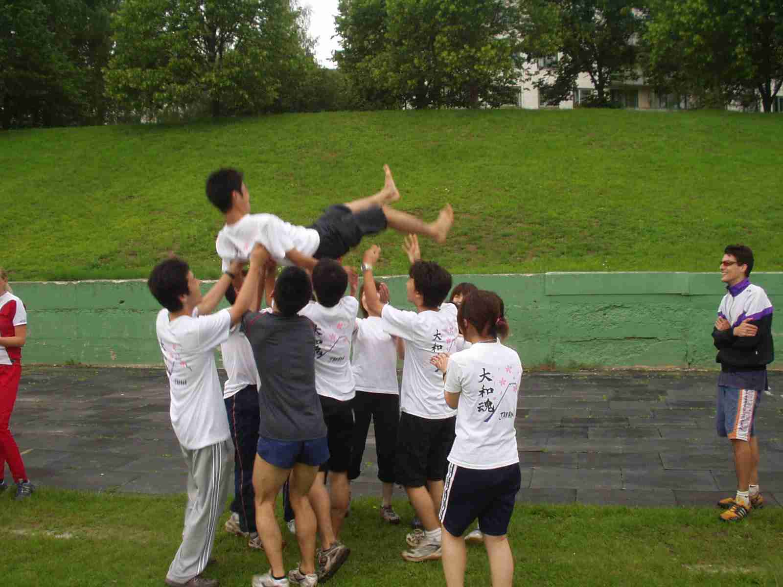盛り上がるデンマークチームの横でこっちも胴上げ