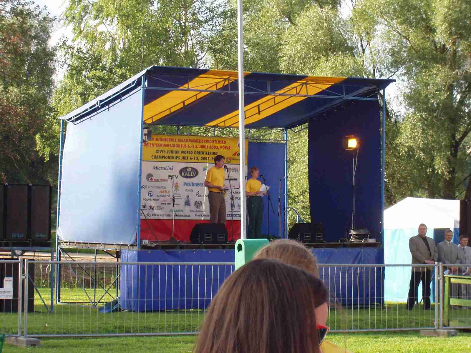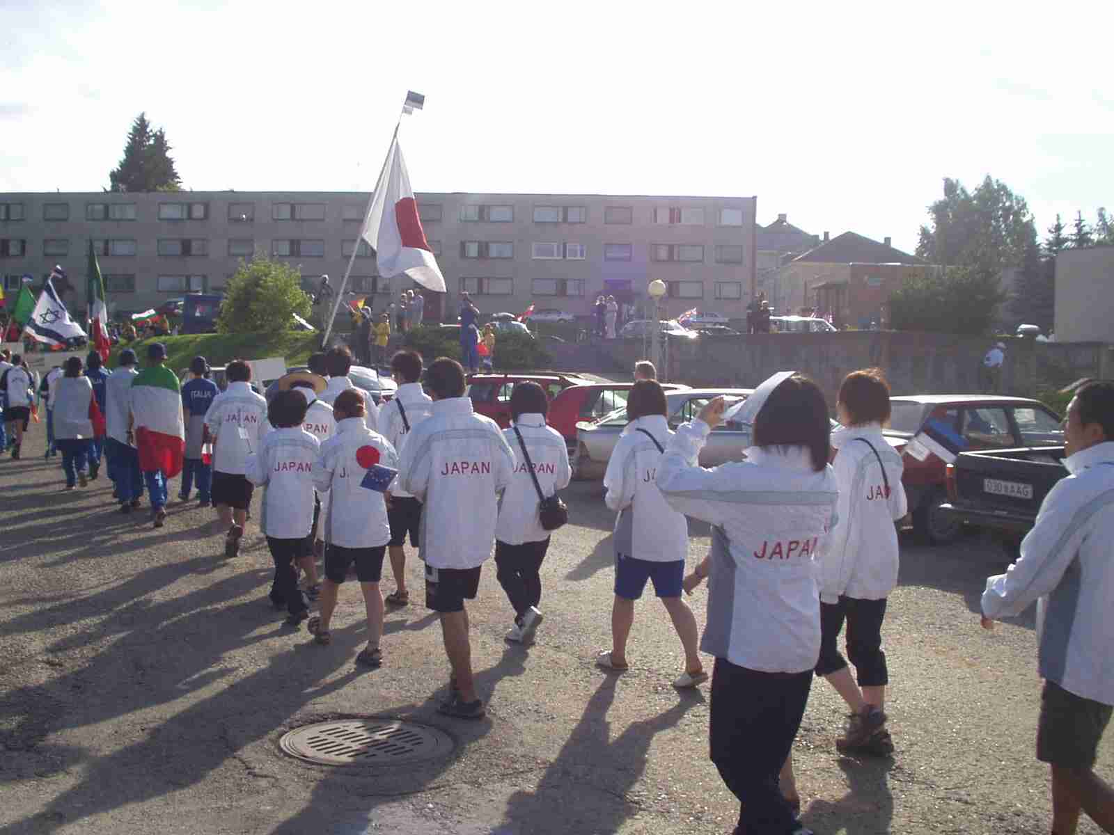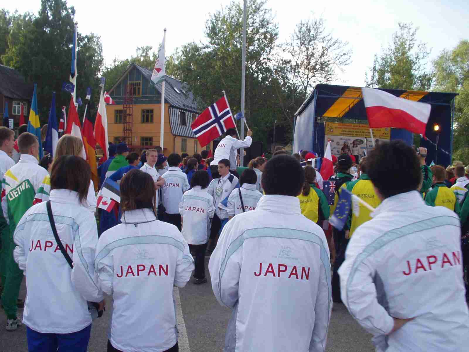 ステージに合わせて盛り上がる選手と後ろでそれを見守る選手