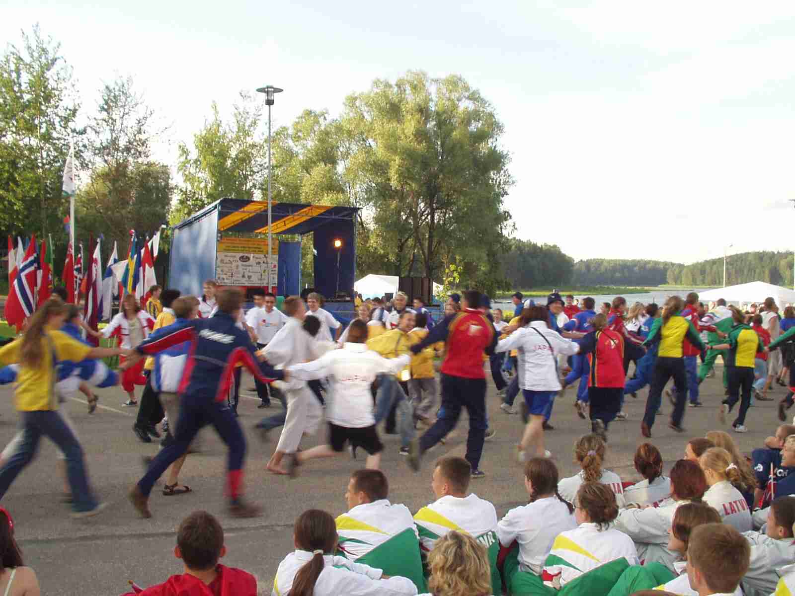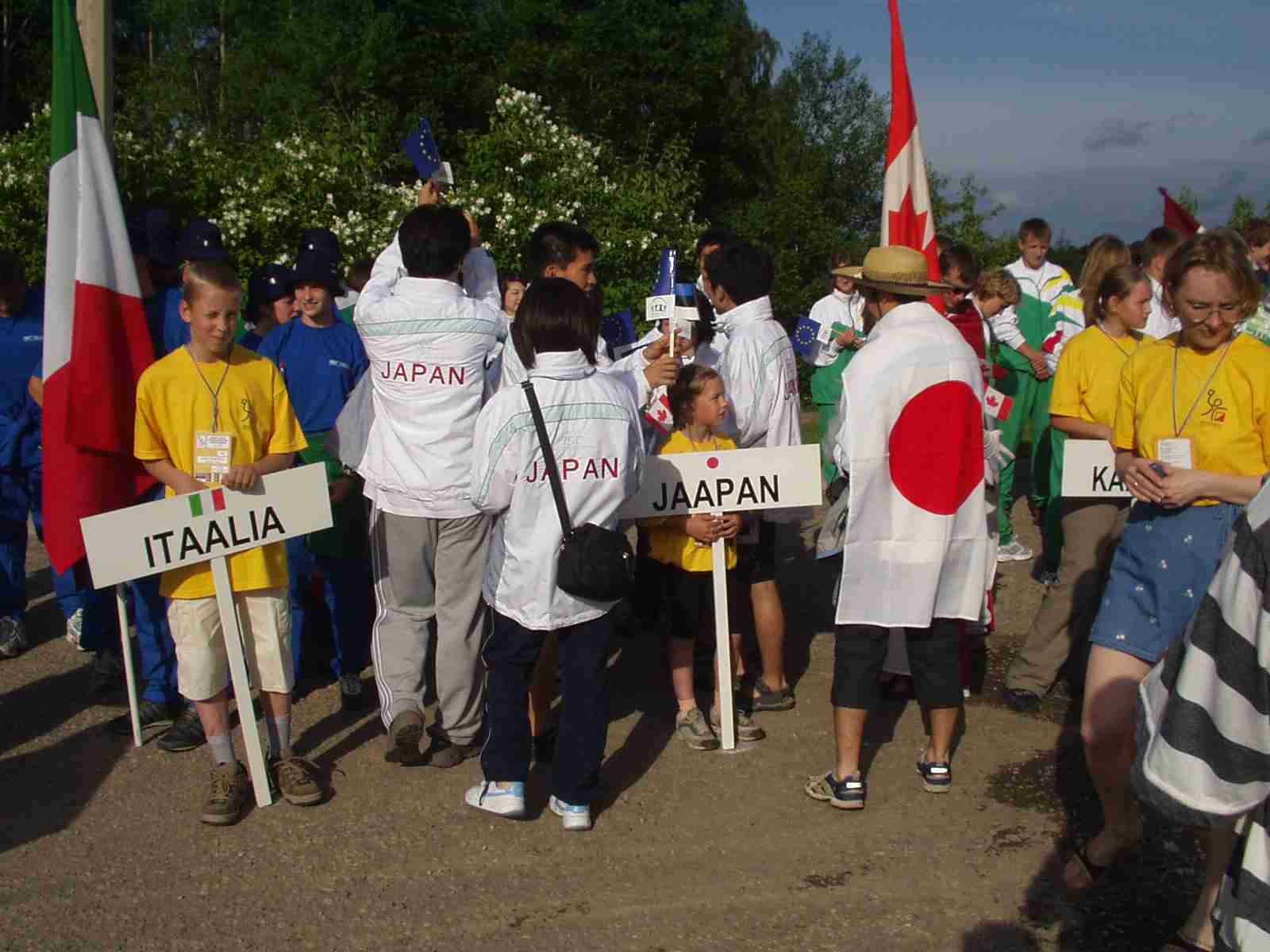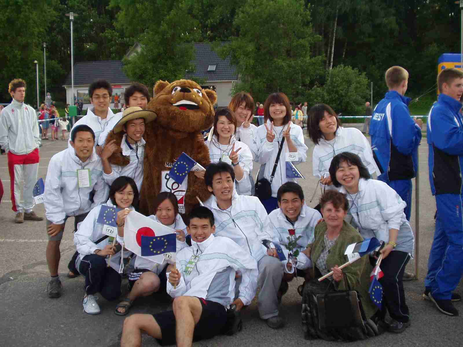 ステージに合わせて盛り上がる選手と後ろでそれを見守る選手