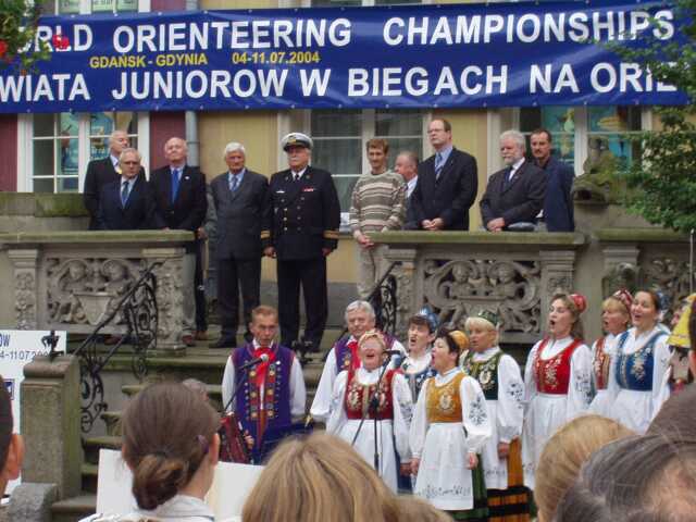 一応、後ろに並ぶお偉いさんと垂れ幕を入れて