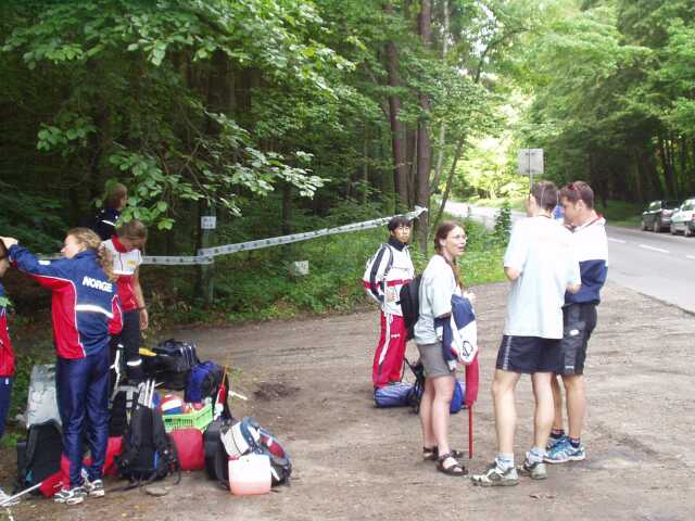 ミドル決勝のスタートからフィニッシュへのバスを待つオフィシャルたち