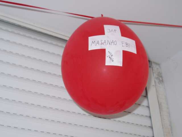 スイスは風船を10個つるしての発表だが海老成直が堂々の登場