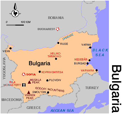 YugslaiviaBulgariaRomaniaRomaniaVeliko TarnovoNesebarVarvaraKoprivshtitsaSofiaRila MonasteryMusala PeakVihren PeakRodopi MountainsYugoslaviaGreeceTurkey
