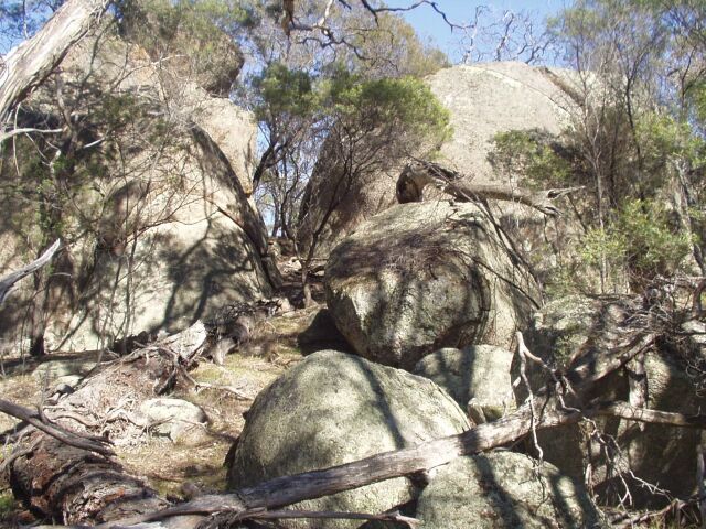 北東から進んだ時の18番手前の巨大岩群
