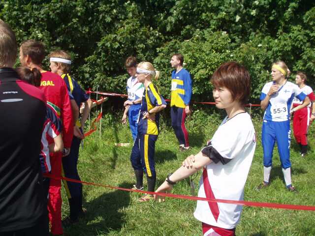 ちょっと出遅れたスイス選手を待つアンカーのシモーネ