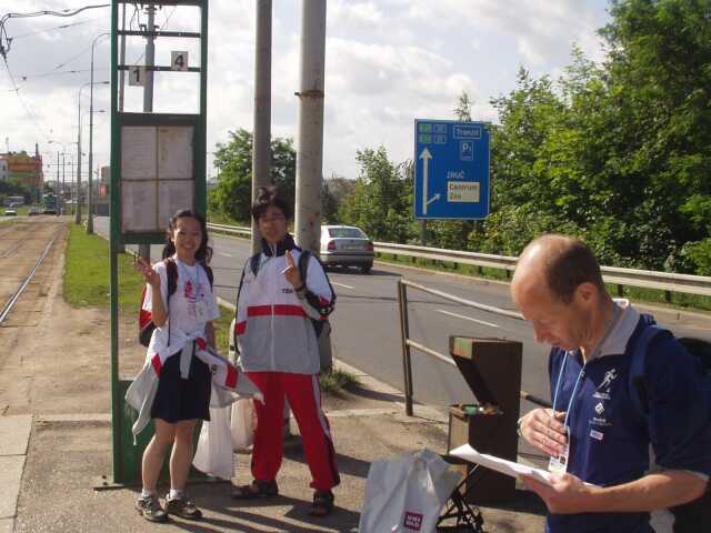 路面電車に乗ってスプリントの会場へ。(加賀屋寿と寺垣内)