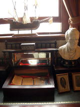 6時近いですが、まだまだ外は明るいです。 窓から差し込む光に帆船が映えてきれい。 なんだかいろいろ写真とか胸像とか。 |
