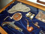 ホームズの七つ道具ってこと……かしら。 しかしパイプまではよくわかるんだけど、そのうえのもうひとつのパイプが木の長靴型なのはどう評価したらいいのか…… |