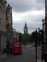 お天気、いまいちですね。 朝早いってのもあるのですが。 正面にビッグ・ベンが見えます。 左手には、ロンドンの名物、二階建バス。 ロンドンのバスには悲しい思い出が。 (乗り間違えて、乗り継いだり戻ったりで1時間半放浪) |