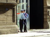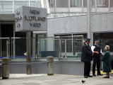 ニュー・スコットランドヤードの前で、道を尋ねているらしいおばあさんに対応している警察官二人。 |