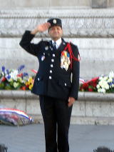 番外編。 彼は警察官ではなく警備の人、だと思うのですが。 サービス精神旺盛で、一緒に写真とってくれたりします。 ゴメンね、私の腕が悪くてブレてしまいました……… この日はなにか凱旋門の辺りでイベントがあったのでしょうか。 退役軍人らしい方を何人かすぐそばの地下鉄の駅で見かけました。 |