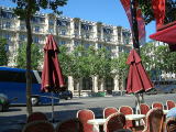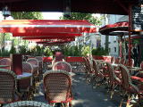 さて、翌朝。 ミーハーなので、シャンゼリゼ大通りのカフェで朝ごはんにしてみました。 まだ時間早いので、すいてます。 |