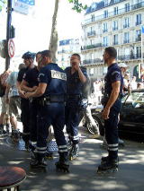 同じく、上の三人の立っている建物。 大きい警察です。 ……というか、警視庁です。 ちなみに写真小さくすると判りにくいのですが、門の左右に貼ってある長方形の布は、「PARIS 2012」というオリンピック誘致のポスター。 この時期はちょうど真っ最中で、エッフェル塔にもでかでかと同じものが貼ってありましたっけ。 |