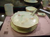 さて、本日はバスの迎えの時間があるので、あまり遠出はしないことに。 条件は、「ホテルのある駅から乗り換えが少ない」「駅から近い」「道に迷わなさそうなとこ」というもの。 私が選んだのは、「恒香棧 Hang Heung's Kitchen」。 尖沙咀の駅から近い新世界中心(ニューワールドセンター)のなかにあります。 早朝のショッピングセンターはすいてて、お店が休みだったらどうしようと心配だったのですが、無事警備員さんに頼んで連れていってもらうことができました。 (現地の人に教えてもらうときには、漢字の名前が確認できるよう、メモかなんかに書いていくといいです) メニューは、朝なのでお粥などの単品か、あとはモーニングセット。 セットにすると、お粥(具は選べます)にシューマイやギョーザなどの小さい点心が3種類ついてきます。 私はセットにしました。 ぷりぷりの海老点心が美味vv さすがにショッピングセンターのなかにあるだけあって、英語はかなり通じます。 ………いまいち通じなかった最後の部分の原因が、あちらの理解力か、私の説明力かはさておき。