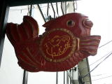 カフェ金魚坂というのがあるのです、本郷三丁目に。その名の通り、インテリアは金魚尽くし。老舗の金魚屋さんが始めたカフェだそうです。というわけで、一度はお茶飲んでみたい金魚坂。予定はいかが〜?と声をかけて四人でお茶しに行きました。面子はせのおさん、らんさん、秋芳さんと私。 細い路地を曲がって坂を下っていくと、目指すカフェ発見。お店は何故かスイス風の作りなのですが、外はさすがに金魚の水槽がいっぱい。金魚掬いや鯉釣り(……やたら上手な男の子が5匹くらい釣ってたよ目の前で)なども出来ます。いーなー金魚。きれいだなー。でも私、魚育てるのヘタなんだもの。母からも「絶対買ってくんな」と厳命されてるので、水槽の前に張り付くだけで諦めました。……ひらひら、きれーい。 |