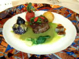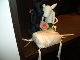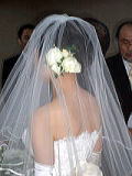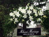 教会はホテルの中のチャペルとかではなく、本当の教会だったので、リング交換前にちゃんと神父さんが聖水で祝福してくれたり、聖書の言葉のあとに講話(?)があったりと、なかなか丁寧でいいお式でした。 しかしにこにことしたやさしそうな神父さまの朴訥としたお話、睡眠時間が二時間強の私には……α波出まくり……かろうじて寝ないですみました(必死)! 披露宴はオテル・ドゥ・ミクニです。レストランウェディング。わーい、料理は期待できますわvv