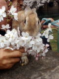 ついでなので、一番上のお姉ちゃんがイヌのリードにつないで連れてきてたウサギと桜の記念写真。