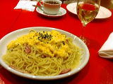 雨が強くなりそうな気配だったので、別のところに移動する予定だったのを切り上げてお茶だけして帰ろうと、目に付いたイタリアンレストラン「ラ・ベルデ」へ。 でも席ついたらなんかおなかすいたし!というわけで、ケーキや軽食だけの人と、パスタやリゾット食べてる人と。バラバラ………どんなテーブルよ。 ついでに私はワインが飲みたくなったのですが、グラスでちまちま頼むのもなんだしー、誰か飲みませんか?と訊いてみたのですが、皆様パスということで。