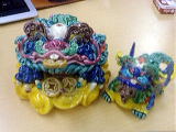 アジアのお客さんから頂いたらしいのですが、コマイヌともなんとも・・・……極彩色だし。 右のチビはコマイヌに羽根が生えたペガサス仕様ですが、左のおっきいのは後ろから見ると人魚のシッポみたいでした。 ほんとに何のイキモノなの・・・…? ちなみにあとサイズが違うのがあと2匹います。 陶器製で端々欠けてきたことだし、私が近々神社の人形供養コーナーに奉納してきたいと思います……… ■休肝日。 8月24日(日) 歌舞伎座の第三部観てきました。 今回の目玉、野田歌舞伎の新作、『野田版 愛陀姫』が入っている幕です。 七之助と勘三郎が親子で恋敵を演じるという、楽しみにしていた演目v 今日はちょっと人数多めで観に行ったのです。歌舞伎は初めてという人がたくさん。 普段だと2人かせいぜい3人といったところなので、「お弁当は三越で買ってきてね」「あの人はこっちの人のお兄さんだよ」とか事前や幕間にいろいろ話せるのですが、せっかくだから観劇のしおり作ってみようかなぁと思ったのです。よくある「修学旅行のしおり」みたいなやつね。 文章書くのは好きなのでちまちま原稿作っていたのですが、問題は製本…………私、原稿書くのは苦にならないのですが、紙を折るのは致命的。鶴のくちばしがぴしっとなったことがない、「指先まで神経通ってない」と学生時代言われていた人なのです。