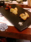 ………とまぁ、なかなか楽しかったのですが。 しかし7時近くに駆け込んだ私、すきっ腹でシングルモルト飲むのは結構危険でした(笑) まず最初にチョコレートの作り方から教えてもらったのですが、カカオ豆をかじってみたり(なかなか香ばしくて私は好き)、味のしないカカオバターを舐めてみたり、とかろいろやったりしつつ、豆の種類ごとの特性の説明があり。 カカオって、赤道のまわりの一定地域、いわゆる「カカオベルト」と呼ばれる範囲でしか育たないのだとか。へー。 「その中でも年間1000ミリ以上降雨量があって、直射日光があたらず、上に日の光をさえぎる丈の高い植物があって、かつ適度なそよ風が吹いていないと育たない………」 隣で連れの某Kさんが「どんだけわがままなんだ」と呟いてます。 「その中でもこの豆は、エクアドル以外で育てると特性である華やかな花の香りがなくなるんです」 …………どんだけお姫様なのか! おいしかったけどね(笑) しかしチョコレートを味わうには、まず色合いや硬さ、匂いのあとに口に含むという真剣な手順が必要なのだそうです。 「チョコレートと対峙するには心を落ち着けて平常心で」とショコラインストラクターなる女性が言ってるときに、「こんだけ目の前に酒並べられといてどうやって平常心になれと?!」と言った連れの女の子の名誉のために、名前は伏せておきます(笑) モルトはグレンフィディック、マッカラン、ボウモアと山崎、白州の5種類。スタンダードだねぇ。 ああまた美味しいお酒を飲みにバーに行きたくなってしまいました。