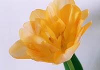 | 少し開いたチューリップ。 八重の花びらが、折りたたまれて。 花弁のふちのrosy purpleのふちどり ってこれではわからないですね。 とってもうすい色で外側だけだと思います。 | |