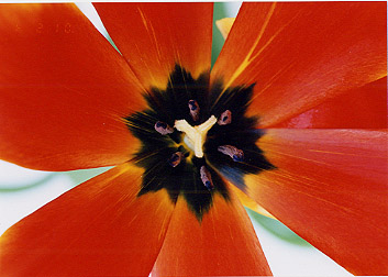低部が黒く赤い花びらとの対比が美しい