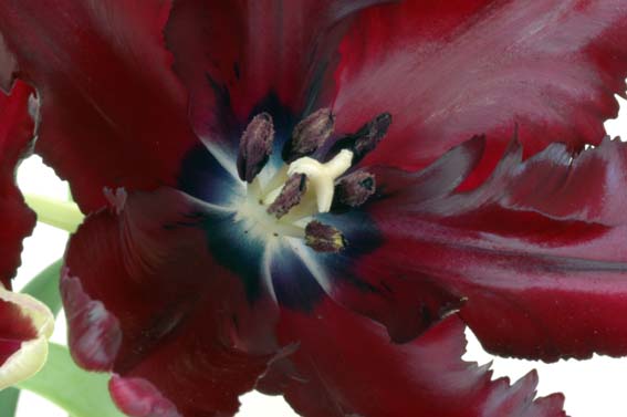 底部はインクブルー。花びらのえび茶がきれいでしょう!