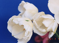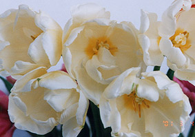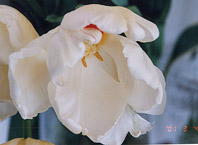 パーロット咲き(Late-Flowering Tulips、Parrot Group) まったく不明のチューリップ。 この名前さえ定かでないの。 でもホワイトパーロットでも、スノーパーロットでもなさそう。 純白でなくて、すこしアイボリーがかってるでしょう。