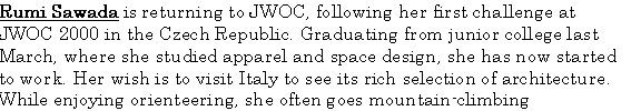 for training and come to JWOC 2001 to make her first challenge |