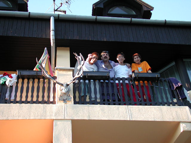 宿舎のベランダでオーナーのおやじに拉致された男性陣