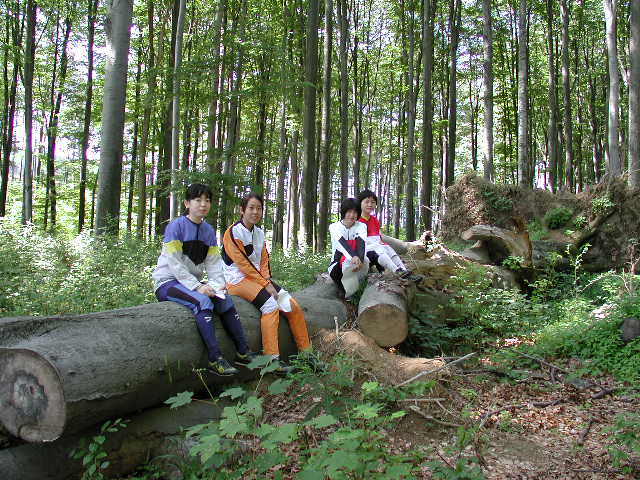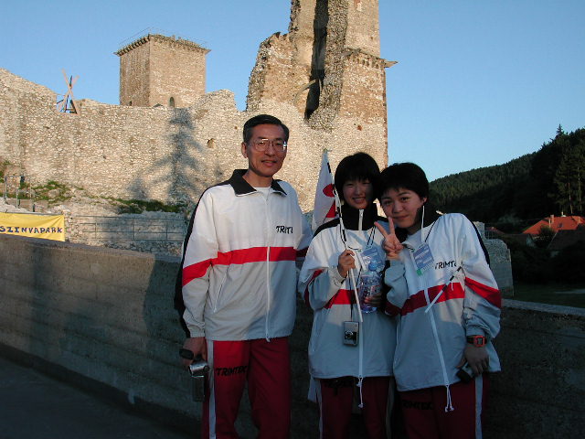 古城への橋を渡る日本チーム
