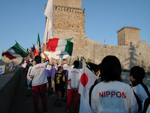 開会式の古城にパレードは続く