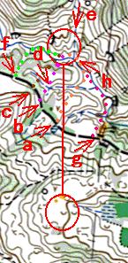 ルート的には(a)や(g)から進んで行く右回りと、(b)や(c)からの直進、さらには(f)まで行って左から回り込むルートに分けられた。右回りでは(h)の水系の分岐を、直進では(e)の大きな沢を目標にしている。